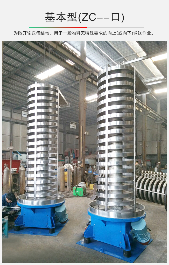 1.基本型(ZC--口),為敞開輸送槽結(jié)構(gòu),用于一股物料無特殊要求的向上(或向下)輸送作業(yè)。